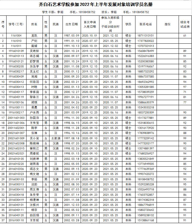 AWC万象城娱乐参加2022年上半年发展对象培训班学员名册