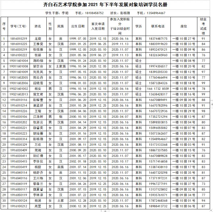 AWC万象城娱乐参加2021年下半年发展对象培训班学员名册