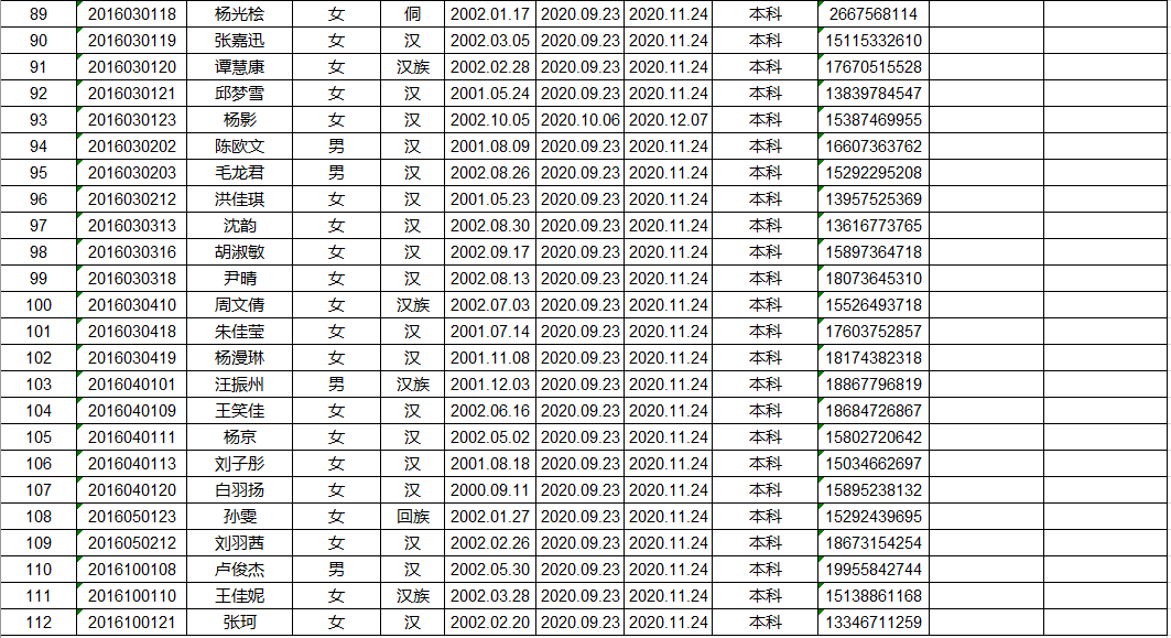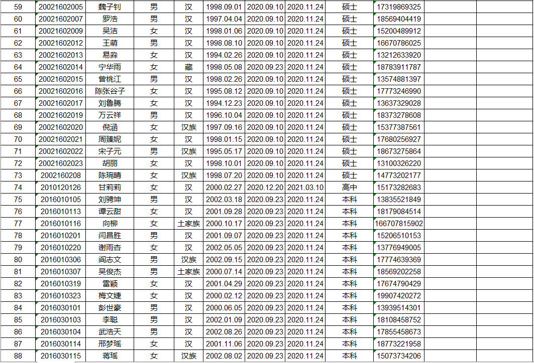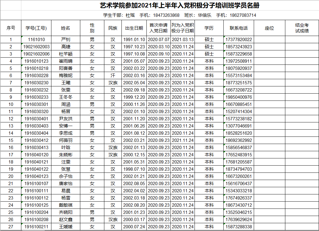 艺术学院2021年上半年入党积极分子培训班学员名册