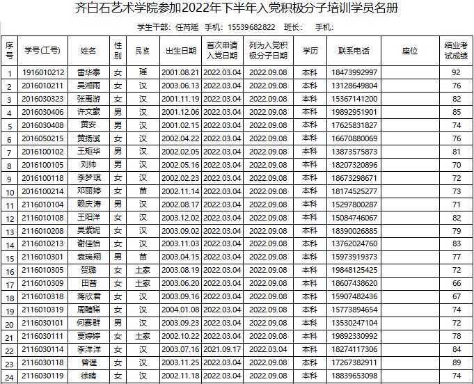 AWC万象城娱乐2022年下半年入党积极分子培训班学员名册