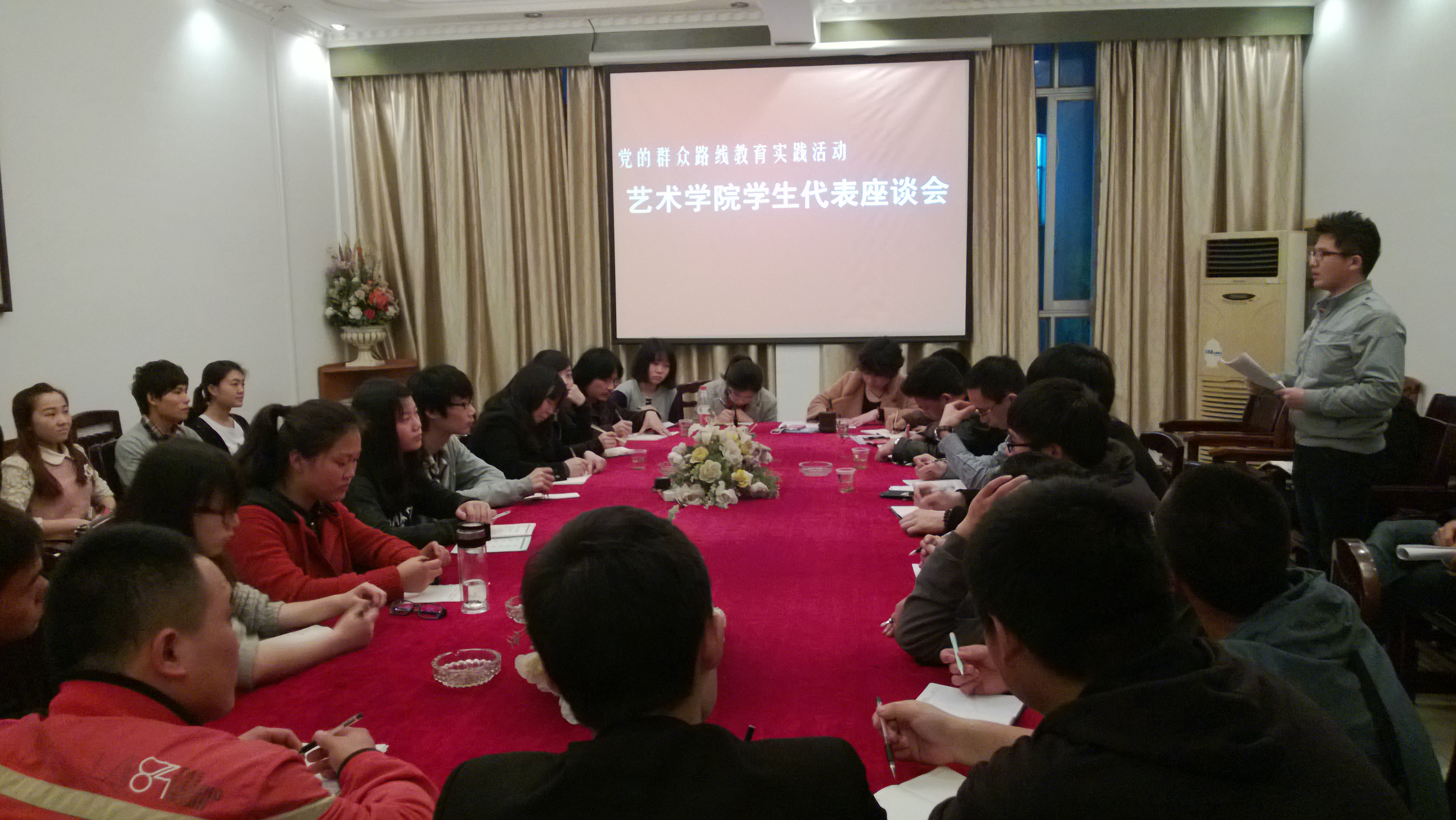 在座谈会上,学生代表主要就教学场地设备、课程设置、教学技能与教学态度、专业竞赛、学术交流和日常生活等问题表达了自己的意见。学生代表反映,艺术学院由于南北校区教学场地过于分散,学生之间、师生之间缺乏横向、纵向交流;音乐楼、教学楼(特别是九教楼)设施不完善,严重影响了学习效果;课程设置应更紧密联系专业特点,增加实践动手课程和外出写生、实习、考察等实践课程;个别专业技法课的老师课堂示范不够,老师有随意调课的现象;还反映了外聘老师教学质量不高、研究生专业教室和画室的配备、校园网络问题、学生宿舍桶装饮用水质量等问题。