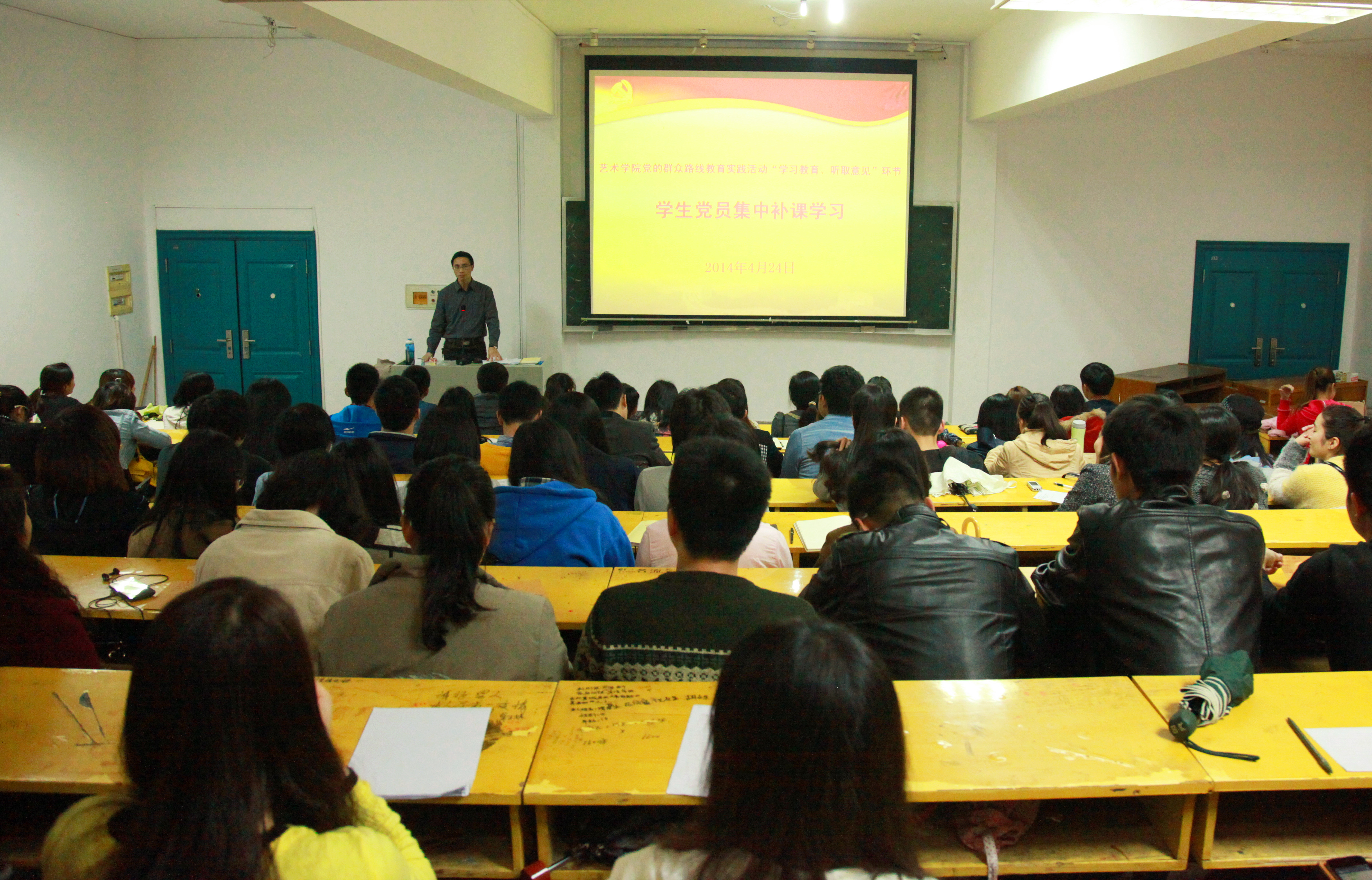 在党的群众路线教育实践活动“学习教育、听取意见”环节中,艺术学院通过严格贯彻活动精神,落实各项规定动作,分别对教工党员和学生党员进行集中补课,现已实现“四个全覆盖”。