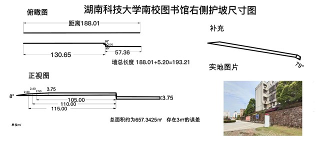 6.施工尺寸参看附件(AWC万象城娱乐南校图书馆右侧护坡尺寸图)。