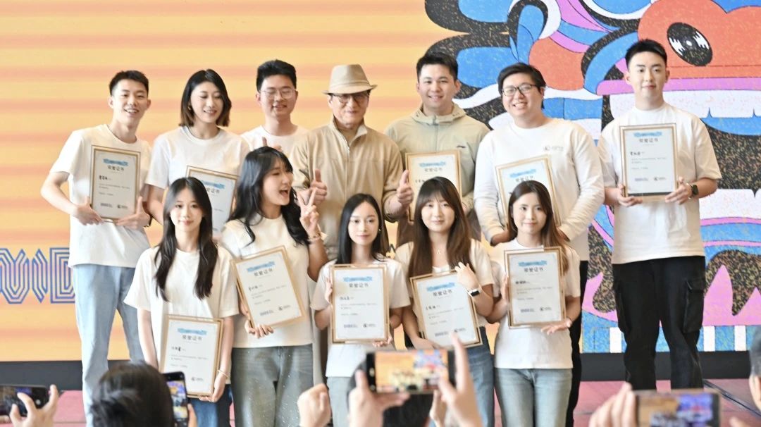 成龙院长为成龙影视传媒学院师生颁发奖项。