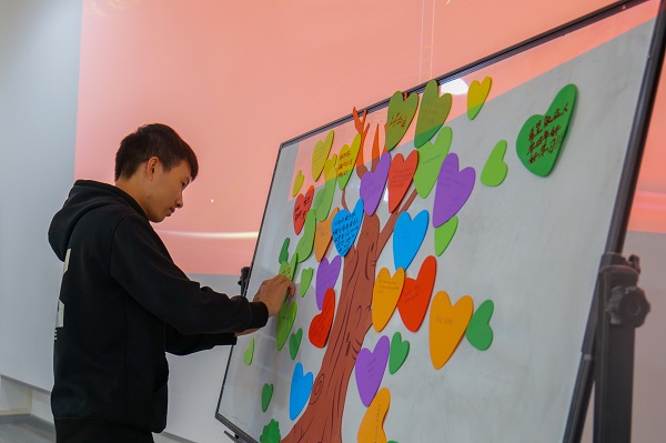 环境设计学院辅导员郭晓宇老师在园林2202班“喜迎二十大,初心伴我行”主题班会上,结合党的百年奋斗史带领同学们走近党的二十大。“站在两个百年交汇点上,作为中华民族未来希望与脊梁的新时代青年,我们理应肩负历史使命,为实现伟大复兴中国梦奉献青春力量”她鼓励大家树立远大理想,实现人生价值,并引导同学们将自己的短期目标分享在“愿望树”上。张洲彬同学在分享中这样写道:人无精神则不立,国无精神则不强,新时代青年奋发图强!