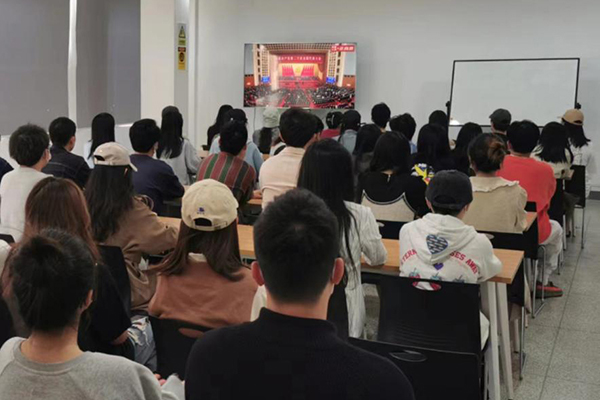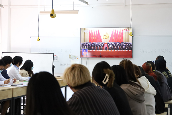 师生认真收看大会直播。