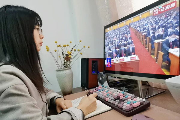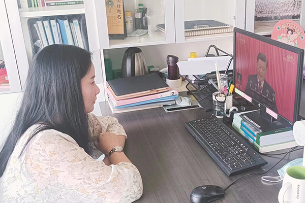 刘玉娇(环境设计2201班学生):我们何其有幸,成长在最好的时代,见证祖国一路的发展历程,感到与有荣焉。中国之变,不仅是生活之变、发展之变,更是中国人的精神之变、气质之变。作为新时代的接班人,我们要肩负起历史使命,怀抱远大理想,努力提高自身素养,培养吃苦耐劳的精神,树立终身学习的观念,坚定战略自信,保持战略清醒,增强信心斗志,用当代青年的星星之火,汇入中华民族伟大复兴的燎原之火,奋力谱写全面建设社会主义现代化国家的崭新篇章。