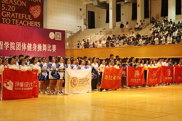 在热情的掌声与呼喊中,环境设计学院跑步入场,不断变幻的音乐背景,队形、动作多变,节奏清晰,状态饱满,青春洋溢。最后出场的是信息工程学院代表队,队员们佩戴荧光手环,举手投足间,光点闪动,旋律动感。