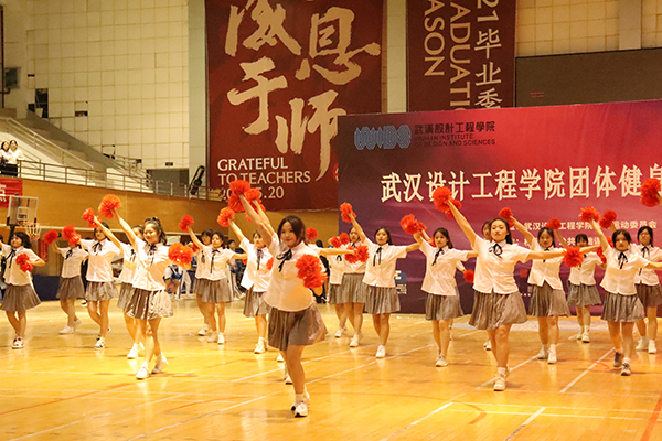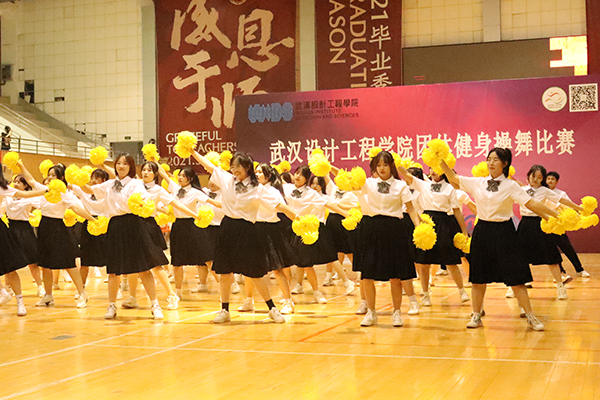 接下来上场的是食品与生物科技学院代表队,他们手牵手谢幕,寓意团结奋进、一起迎接新时代,给人留下深刻印象。亚心护理学院也不甘示弱,队员们一转一跳、舞姿曼妙,一伸一展、收放自然,一立一跃、精神抖擞,招招式式无不展现青春朝气。