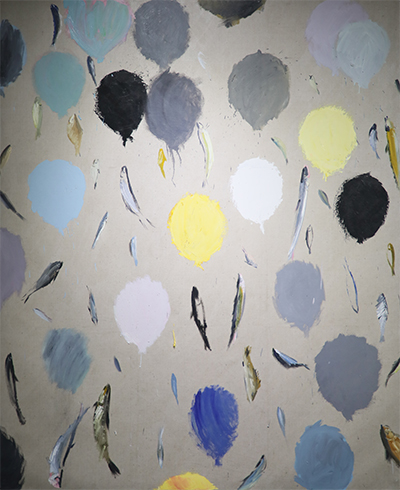 “软着陆这个名字表达了一种浪漫的意向,气球和鱼是视觉元素,所以它比抽象更抽象,比具象更具象。”环境设计学院教师王轩也的作品《软着陆之二》荣获本届作品展美术类一等奖,他幽默地表示,创作这幅作品时自己的心态就如同画中的鱼儿一样自在,得奖只是个意外。当天,不少观众驻足在这幅巨型画作前,感受鱼戏“彩球”间的那份悠然自得。