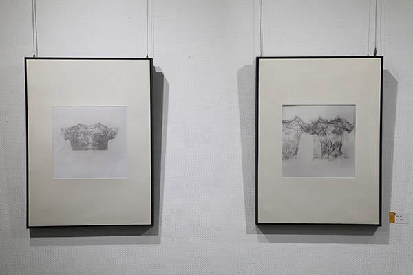 “这幅画儿让我想起了女儿小时候的样子。”几位妈妈在美术类二等奖作品,版画《时光》前轻声谈论。据画作者藏龙美术馆李贝丽老师介绍,“作品运用版画工艺将现实生活中的旧衣物进行再现,用灰色调与衣物的折痕烙印,记录儿时那份流逝的情感、提炼对生活的感悟。”