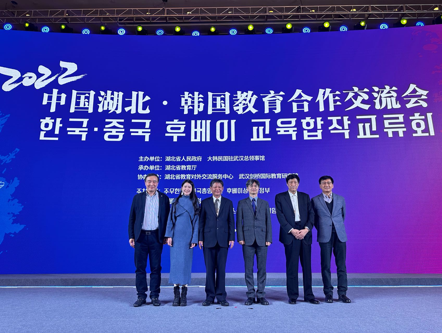 本次会议以“促进交流、合作共赢”为主题,旨在搭建中韩两国教育领域的交流平台,促进中国湖北与韩国学校的全方位深度合作。会议采取“线上、线下”双规模式进行。湖北省外办一级巡视员冯细国、韩国驻武汉总领事馆副总领事安荣基、湖北省教育厅二级巡视员赵泽刚、湖北省教育厅对外合作与交流处处长黄念平、韩国驻华大使馆教育官孙上昊以及多所高校推介人现场致辞和发言。