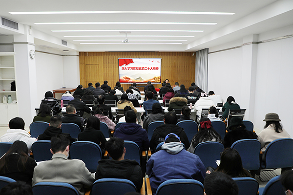 本次宣讲会采用线上线下同步进行的方式举行,学校党委常委、党委委员、纪委委员,各党总支、直属党支部书记、副书记,各部门党员负责人和全校党务工作者、党的二十大精神师生进基层巡讲队成员、学生代表参加了学习。