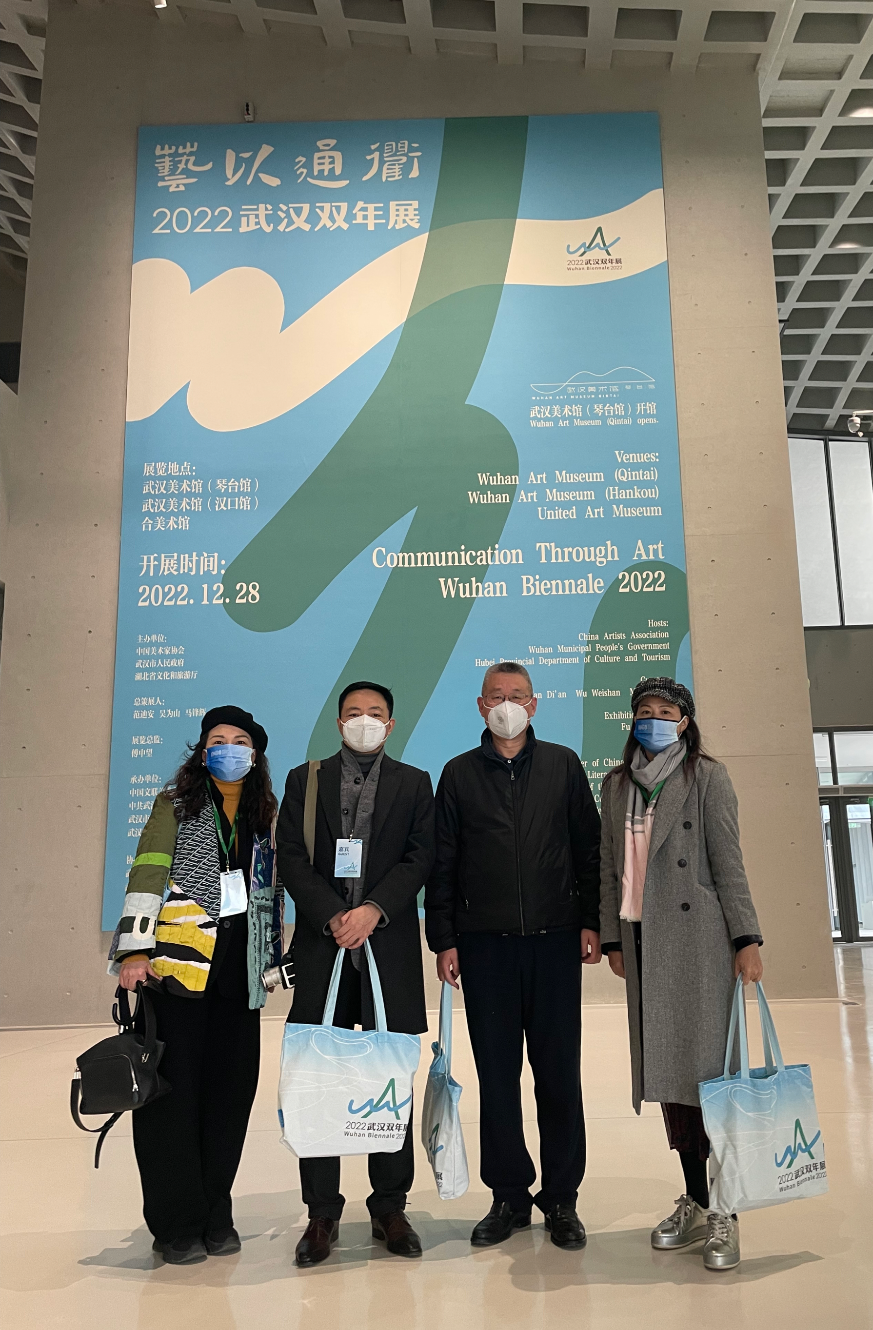 董事魏彬(右一),公共艺术学院书记、常务副院长吴茜(左一)与开幕式嘉宾武汉设计之都促进中心理事长金志宏(右二)、武汉市规划研究院副院长黄焕(左二)合影。