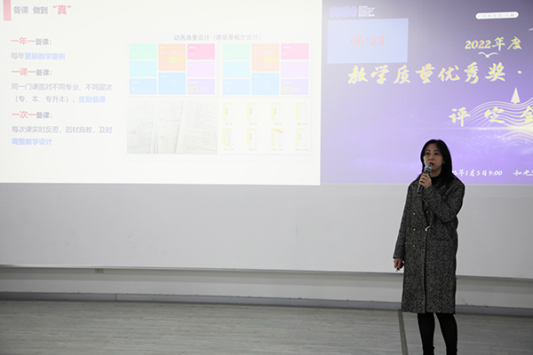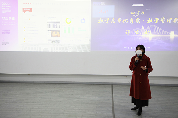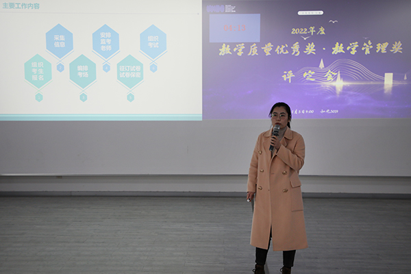 汇报现场,与会评委依据评定要求对汇报人进行综合评分。最终,付晓燕、戴嫚、孙蕾3人获“教学质量优秀奖”一等奖,陆超、白宇豪等6人获二等奖,李灿灿等16人获三等奖;“教学管理奖”一等奖则由谢雅婷摘得,陈杉、蔡权2人获二等奖,贺艺博等3人获三等奖。
