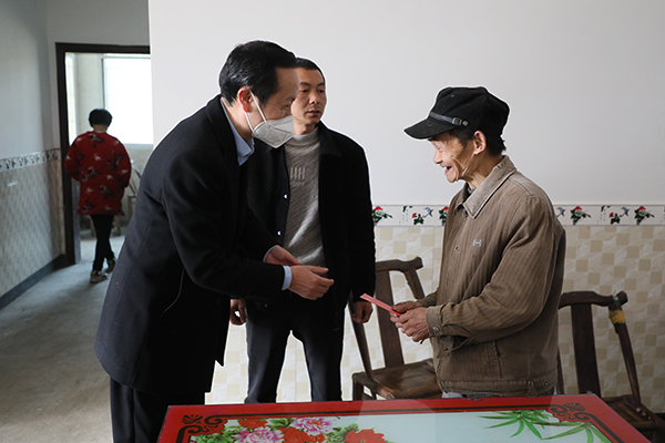 徐拥华率党委常委、宣传部部长邹荣,党政办公室主任程春,乡村振兴驻村工作队队长尹保松、队员吴永超,在匡河镇和张家河村领导的陪同下,走访慰问监测户、脱贫户,为他们送去新年的温暖。