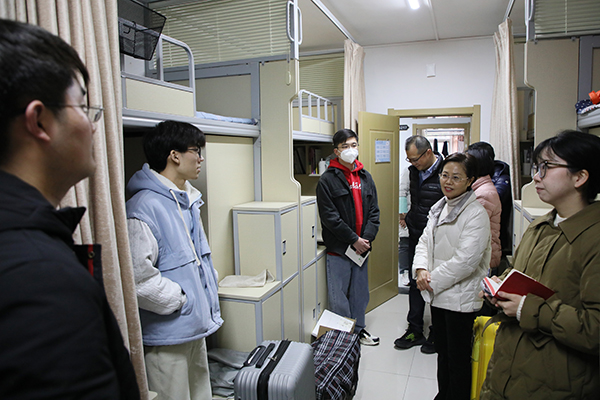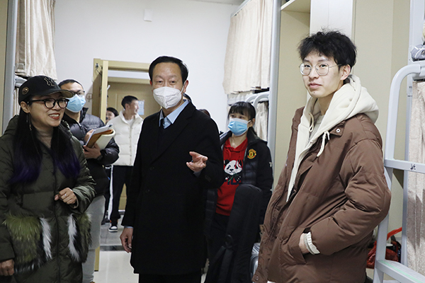 学校党委书记冉春桃在商学院领导、辅导员和班主任的陪同下,先后走进蒹葭斋、春华斋学生公寓亲切看望返校学子。“寒假过得怎么样?”“开学以后有什么学习安排?”每到一处寝室,冉书记都会细心询问学生们的学习生活情况,了解他们返校后的思想动态。她叮嘱大家要调整好作息时间,安排好学习生活,注意加强个人卫生与健康防护,并勉励大家珍惜大学时光,认真钻研专业知识,掌握专业技能,扩展兴趣爱好,不断磨砺和提升自我。同学们深受鼓舞,畅所欲言,现场气氛温馨融洽。