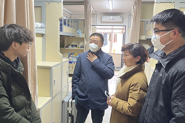 校长龚少平一行依次走访了学校食品与生物科技学院、亚心护理学院返校学子,并巡视督察了学校健康驿站建设情况。“春节过得怎么啊?”“大家要尽快调整好作息时间,做好上课准备。”走访过程中,龚校长面带微笑与同学们亲切交谈,细致了解学生们的家庭情况和个人健康状态。他耐心指导同学们做好个人防护,并叮嘱大家平时要积极锻炼身体,提高身体素质,调整好生活作息。临走前还特意嘱咐同学们给寝室多通风勤打扫,主动为自己营造健康卫生的学习与生活环境。