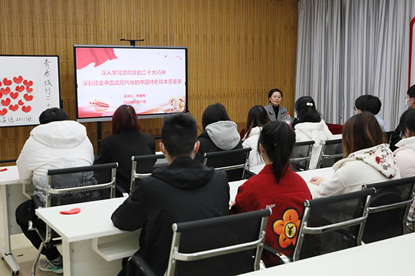 主题班会上,党委书记冉春桃、校长龚少平以《深入学习贯彻党的二十大精神 深刻领会中国式现代化的中国特色和本质要求》为主题,从深刻学习领会党的二十大精神,深刻领会中国共产党的中心任务,深刻领会中国式现代化的中国特色和本质要求等方面进行了深入解读和系统阐释。