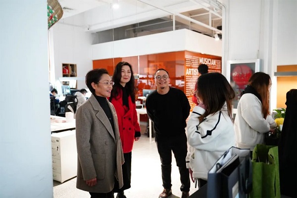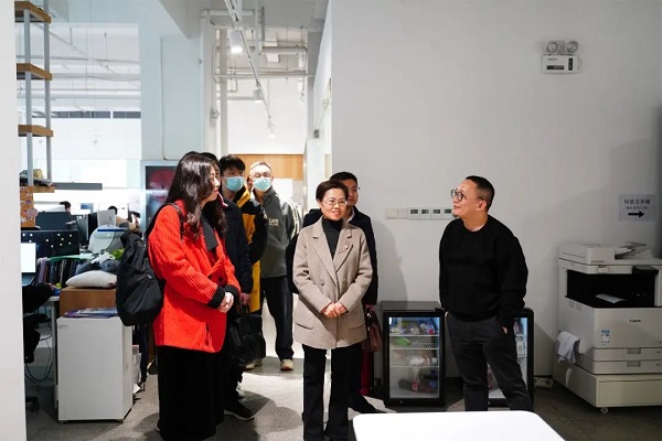 冉春桃一行实地参观考察了武汉意味飞行文化发展有限责任公司企业工作环境、运营模式等基本情况,详细了解了企业在产品设计、文化创意服务、摄影视频设计等方面的最新发展成果,并看望了在企业工作的部分优秀校友。