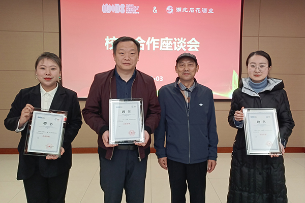 会上,商学院院长湛柏明为石花酒业营销管理总部综合管理部部长杜斌、人力资源部经理王怡雯,武汉大区总监王甜颁发学院企业导师聘书。