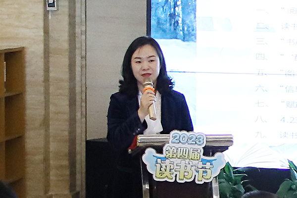 图书馆馆长杨文静介绍读书节活动。刘恒 摄