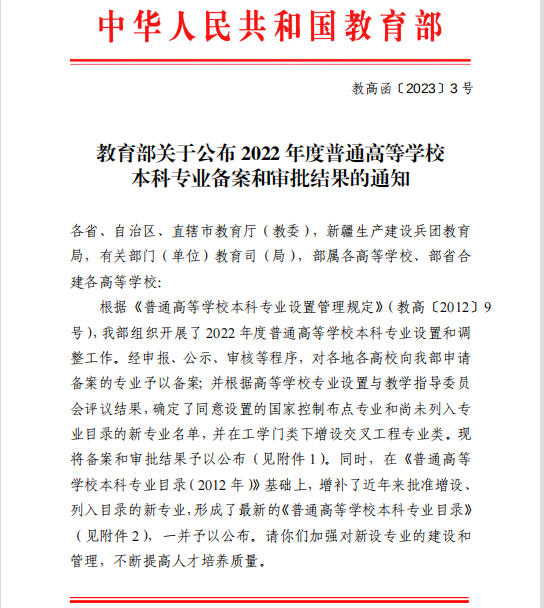 本网讯(通讯员 韩洁)近日,教育部发布了《关于公布2022年度普通高等学校本科专业备案和审批结果的通知》,best365申报的食品营养与健康、医学影像技术2个本科专业获批。至此,best365本科专业增至38个。