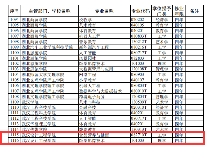 据教务处介绍,食品营养与健康、医学影像技术2个专业是学校贯彻落实《“健康中国2030”规划纲要》以及《武汉市大健康产业发展规划(2019-2035年)》精神,深入推进“四新”建设以及“大健康”产业集群结构布局而新设的本科专业,是学校主动适应构建高等教育新发展格局需要,积极对接国家和区域经济社会发展需求,推动急需领域紧缺人才培养的重要举措。