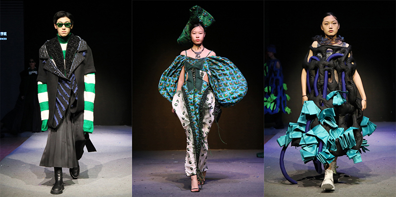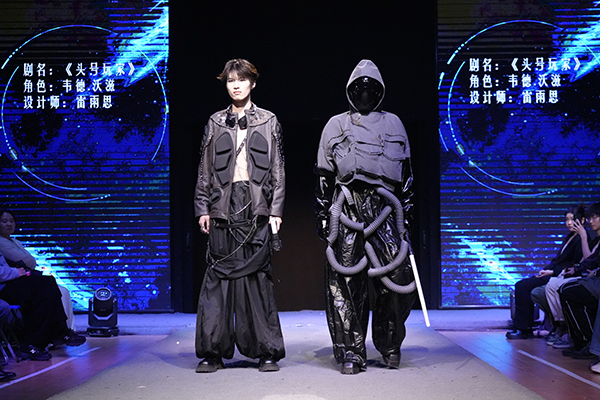 值得一提的是,本次班级发布活动还有8名毕业生对电影《头号玩家》的角色服装进行了再创作。受电影场景和相关角色启发,设计师们将现代科技元素导入作品设计,现代艺术与未来科技的激情碰撞,为观众带去了一场精彩的超幻时空秀。