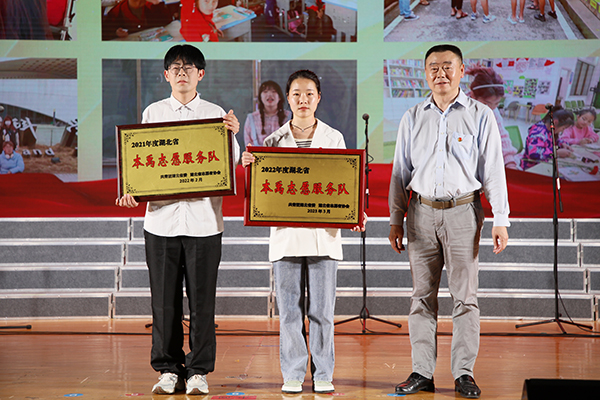 表彰活动在雄壮的国歌声中拉开帷幕。张丽娟宣读《2022-2023学年“五四”表彰决定》,出席活动的校领导依次为“五四红旗团委”“活力团支部”“优秀学生会”“星级社团”“优秀共青团干部”“最美团支书”“最美班长”“优秀学生干部”“优秀共青团员”“优秀青年志愿者”等先进集体和优秀个人颁奖。