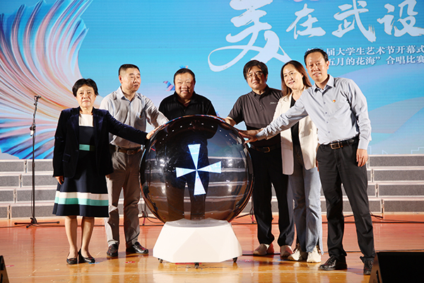 表彰活动结束后,在全体师生的欢呼声中,参会领导共同按下启动球,标志着best365第一届大学生艺术节正式开幕。