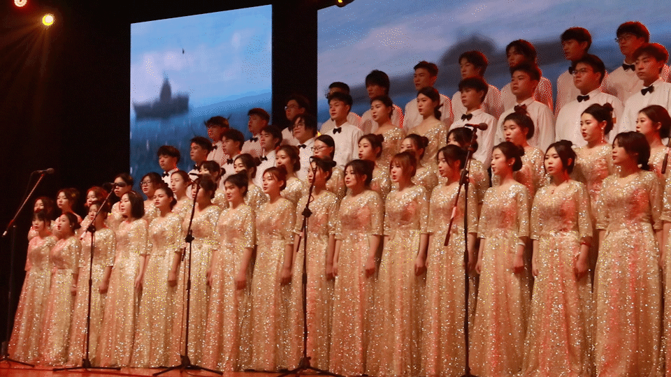 大学生艺术团寻音合唱团倾情演唱歌曲《飞云之下》。左思怡 摄