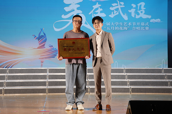 本网讯(记者 叶桐 姜若文)5月4日晚,“学习二十大 永远跟党走 奋进新征程”——“五四”表彰活动、第一届大学生艺术节开幕式暨2023年“五月的花海”合唱比赛在大学生活动中心二楼举行。学校董事长程凡,校长、党委副书记龚少平,董事魏彬,党委副书记、副校长张丽娟,副校长徐拥华等校领导出席活动,并为获奖集体和个人颁奖。