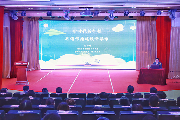 “师者,人之模范也。”彭贤则教授以“新时代新征程 再谱师德建设新华章”为题,结合自己从教三十余年的经历和感悟,从增强责任意识、提高政治站位、铸牢底线思维、涵养精神品德四个方面勉励与会教师要做“有理想信念、有道德情操、有扎实学识、有仁爱之心”的“四有”好老师。