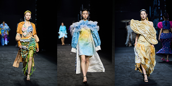 “今晚的大秀充满了Z世代学子对多维设计的全新解锁。”据时尚设计系主任付雪介绍,本次展出共发布时装设计作品56套、演艺服装设计作品8套、珠宝首饰设计作品6套,以及25套虚拟服装作品。“其中,虚拟服装作品是学院探索数字化技术在服装服饰设计领域中的创新运用,实现技术与艺术的碰撞与交融。”