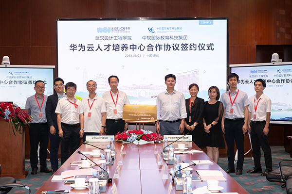 学校教务处处长邱朝坤,信息工程学院院长汪毅、副院长李鲁英、系主任罗雪姣、专业教师易宇纯;华为云学堂副总经理郝月,华为湖北云业务部生态发展部副部长马立恒、生态经理雷宇;中软国际教育科技集团湖北区总经理周星等出席签约揭牌仪式。