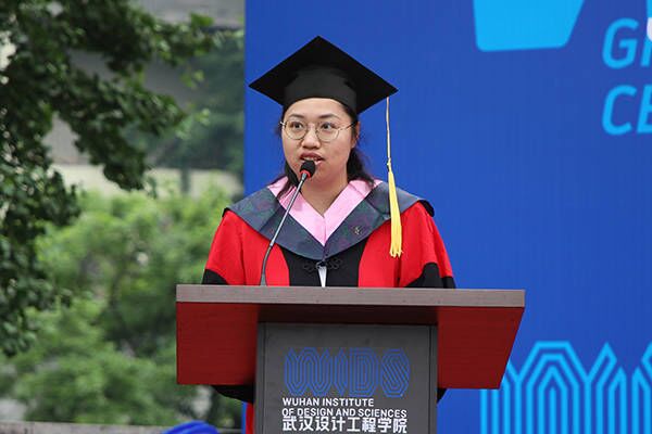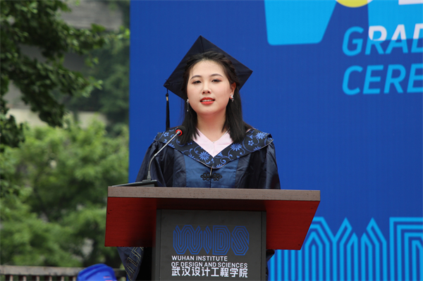 “回忆初见武设的第一印象,每一幕都被加上了诗意的滤镜。”毕业生代表,成龙影视传媒学院范佳妮同学细数着四年青春里的诸多感动,“‘明德’‘八佾’‘希言’这些教学楼的名字,承载着武设对我们的期望和嘱托。”站在新的起点上,她郑重承诺,“请母校放心,我们必将牢记使命、不忘嘱托、砥砺前行。”