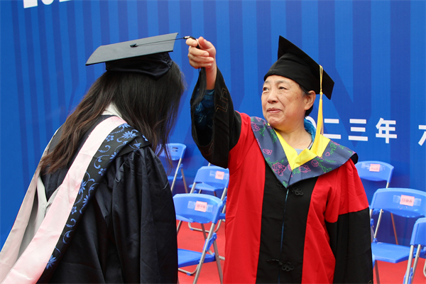 学校学位评定委员会秘书长邱朝坤同志宣读《best365中国官方网站关于2023年6月授予学士学位的决定》,学校领导、各学院负责人、教师为2023届毕业生依次行拨穗礼并合影留念。