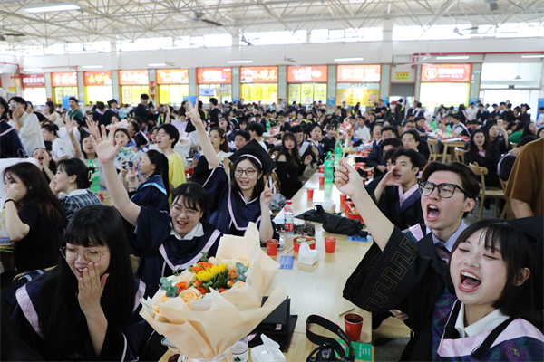 典礼结束后,一场“骄子”盛宴在食堂二楼举行,师生们齐聚一堂共享“送行饺子宴”,“希望毕业生无论走得多远,都能记住母校的味道。”