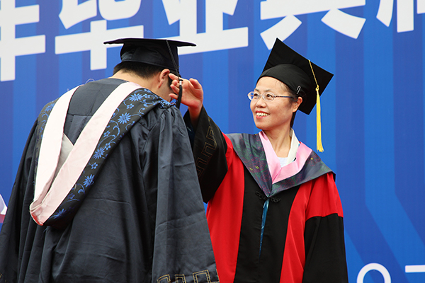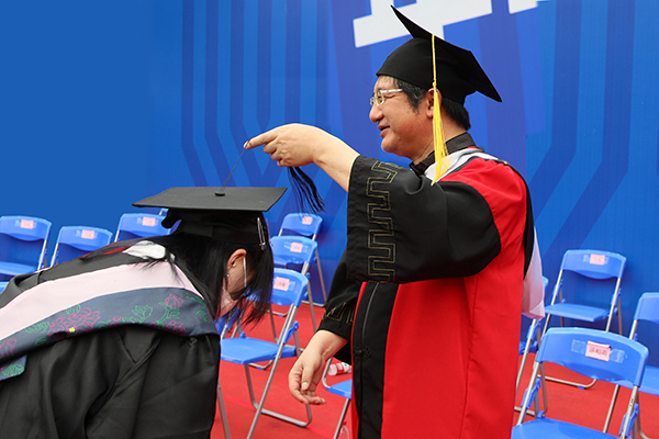 校长龚少平祝福毕业生们“鲜衣怒马绝尘去,九转功成再归来”。刘恒 摄