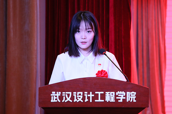 “优秀共产党员”代表、时尚设计学院学生党员黄佳丽发言。刘恒 摄