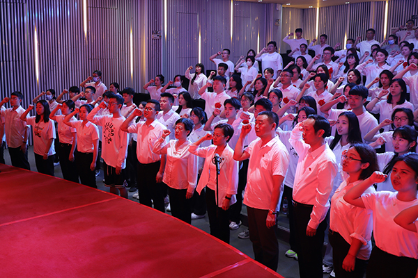 参会领导带领新党员入党宣誓、老党员重温入党誓词,感悟初心使命。刘恒 摄