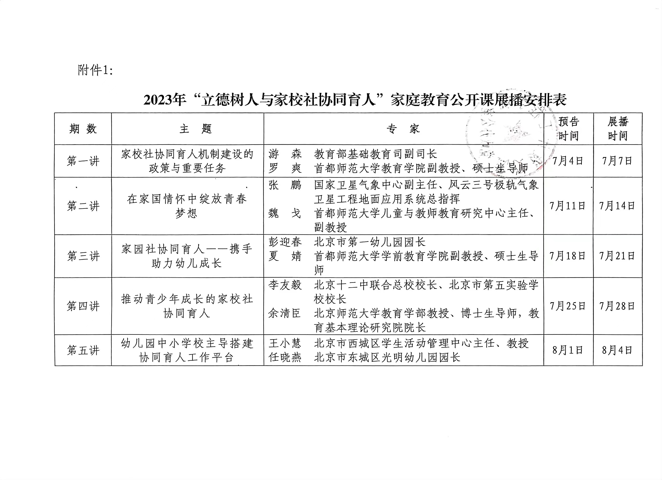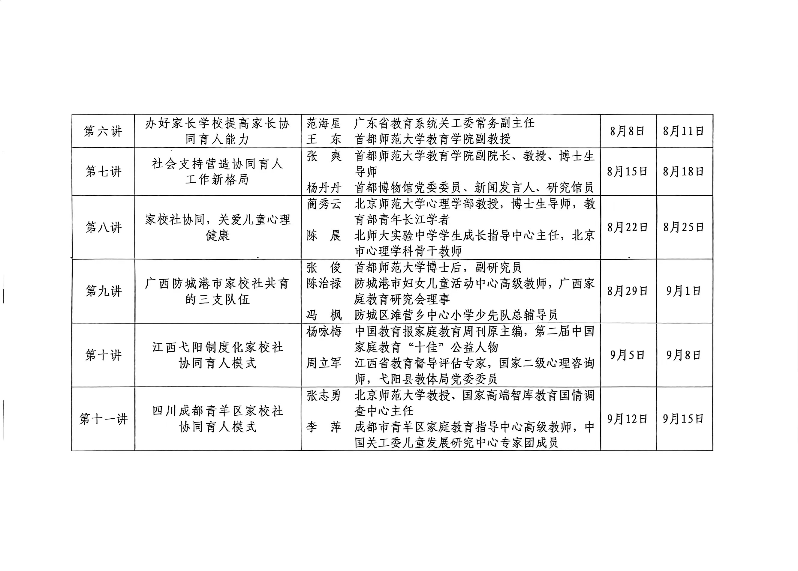 1、2023年“立德树人与家校社协同育人”家庭教育公开课展播安排表