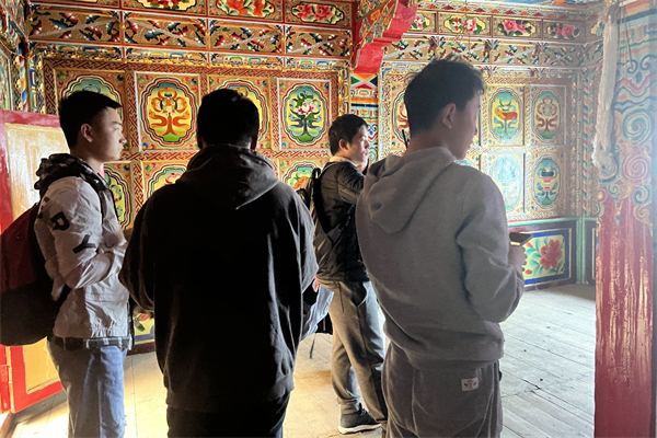 “筑梦服务队”甘孜分队在炉霍县传统藏房进行考察。 林冠程 摄