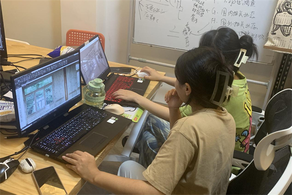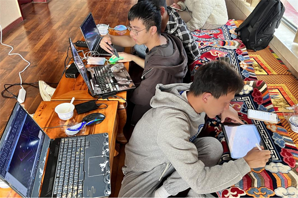“筑梦服务队”甘孜分队成员在设计炉霍县八宝街改造方案。 林冠程 摄