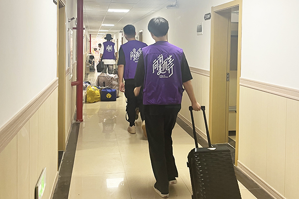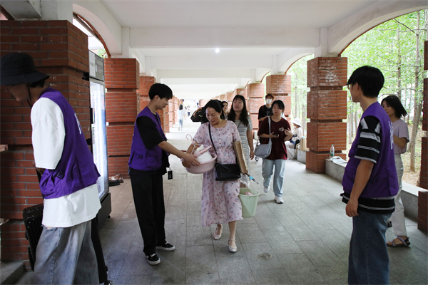 志愿者们热情帮助新生同学及送校家长。刘恒 摄
