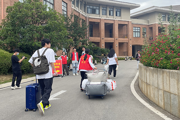 早上八点,学校领导和后勤保障处、保卫处、学生工作处等单位的工作人员及学生志愿者们早已等候在校门口迎接新生到来。为优化新生入学报到流程,学校提前研究部署了迎新方案,从新生接待、食宿安排、校内交通和安保环卫等各方面做好了充分准备,确保迎新工作有序开展。