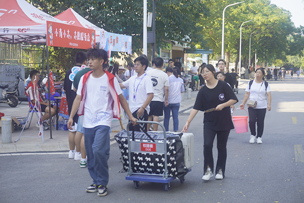 来自山东的戏剧影视美术设计新生张腾在报到当天就感受到了学校的浓浓关怀,“这是我第一次独自离家出远门,在路上的时候我还很忐忑,但是进校后,学长学姐、辅导员,还有宿管阿姨都在帮助我完成报到流程,他们的帮助让我这个外地人感到温暖与熟悉。”