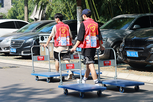 记者看到,从新生进校到大学生活动中心,各学院迎新点标识清晰、整齐有序,现场志愿者们热情周到、有问必答,有忙必帮。为了让来自全国各地的小萌新和家长们感受到“武设人”的热情,今年,校团委志愿服务点不仅提供行李搬运服务,还第一次采用全程导游讲解的形式,带领新生报到并游览校园。