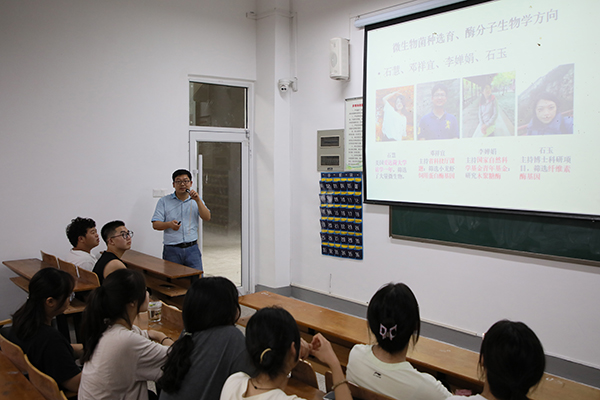 生物工程系系主任邓祥宜、食品科学与工程系主任郑妍、食品质量与安全系系主任罗帷分别向新生解读人才培养方案。刘恒 摄